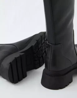 Made from soft vegan leather, these streamlined knee-boots are finished with a lug sole for a rugged touch.