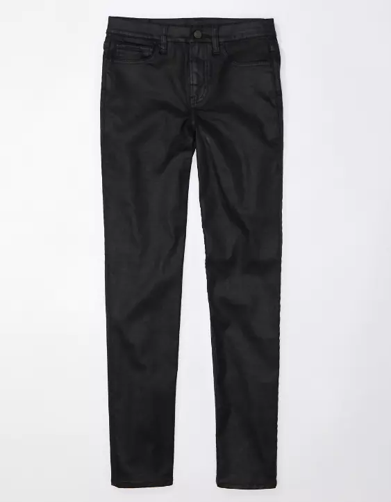A classic straight leg fit, featuring a leathery look for an elevated night out vibe.